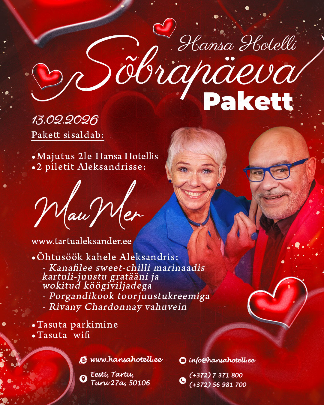 20Feb 2026Friday- 23.00 -EELMÜÜGIS SAADAVAL PIIRATUD ARV SOODUSPILETEID! KLIKI SIIA JA OSTA PILET