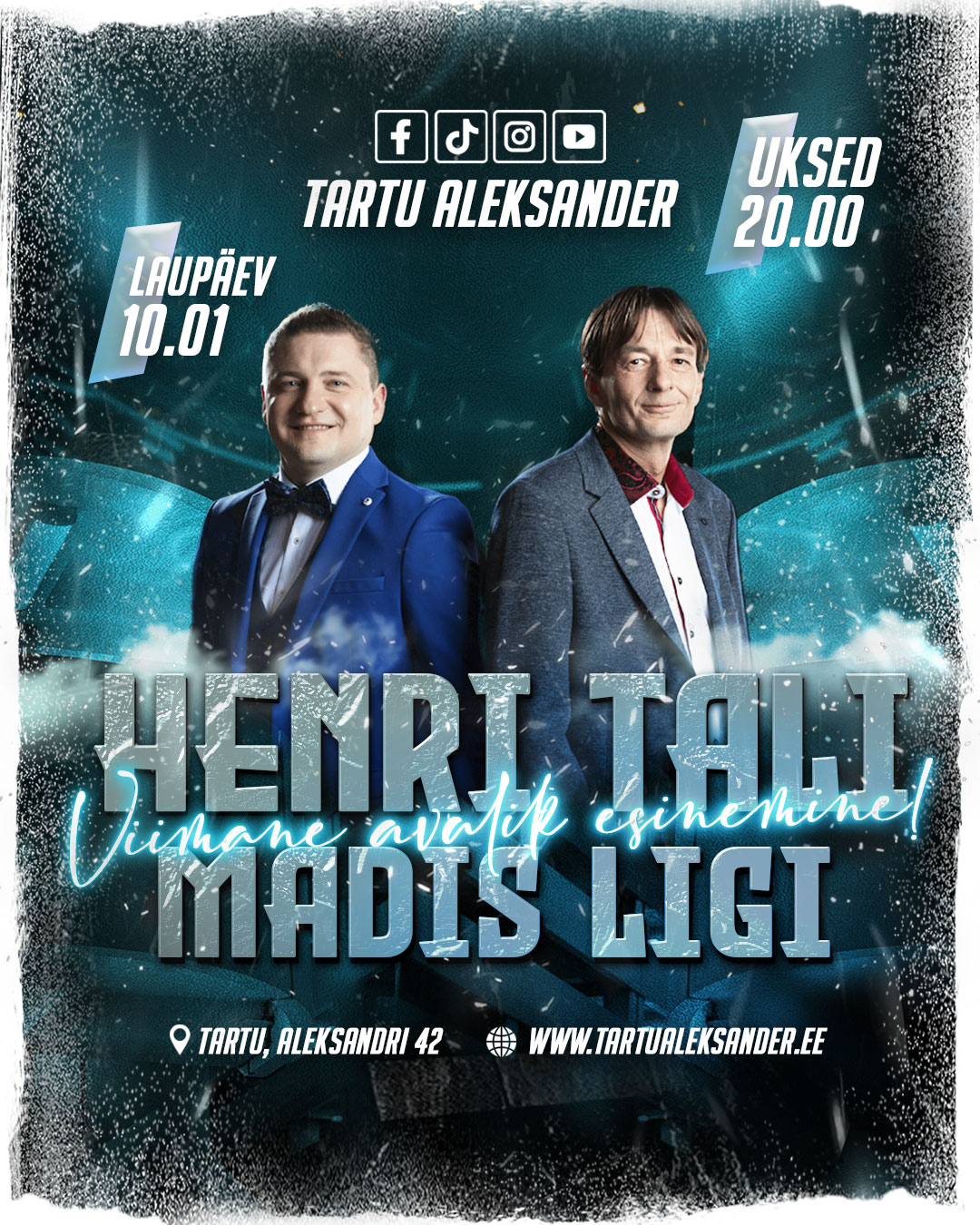 10. jaanuaril koguneme Tartu Aleksandris, et teha üks vägev tantsuõhtu, mis jääb Henri Tali ja Madis Ligi viimaseks avalikuks esinemiseks Tartus teadmata ajaks! Just siin samas majas, toona veel nime all Õlletare, astus see kooslus 15 aastat tagasi esimest korda lavale. Ring on täis saanud ja nüüd on aeg veel üheks suureks kohtumiseks Henri ja Madisega.