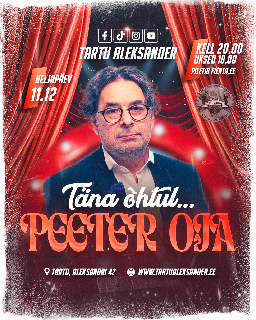 Komöödiaõhtu algab kell 20.00. Uksed avatakse kell 18.00.